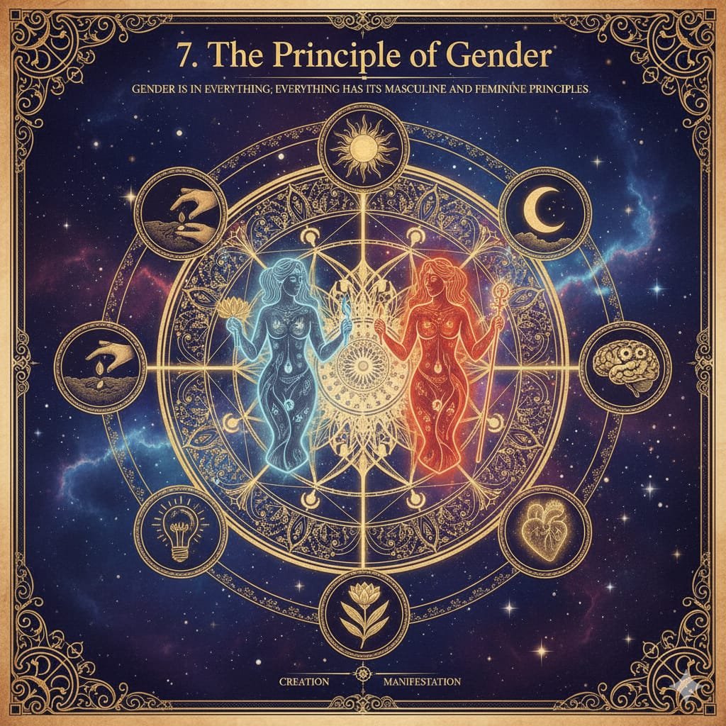 இந்தக் கொள்கை ஆண் மற்றும் பெண் என்ற உயிரியல் பாலினத்தைக் குறிக்கவில்லை. இது பிரபஞ்சத்தில் உள்ள ஆக்கபூர்வமான ஆண் (செயல்படும்) மற்றும் பெண் (பெறும்) ஆற்றல்களைக் குறிக்கிறது. இந்த இரண்டு ஆற்றல்களின் கலப்புதான் படைப்புக்கான அடிப்படையாக உள்ளது.